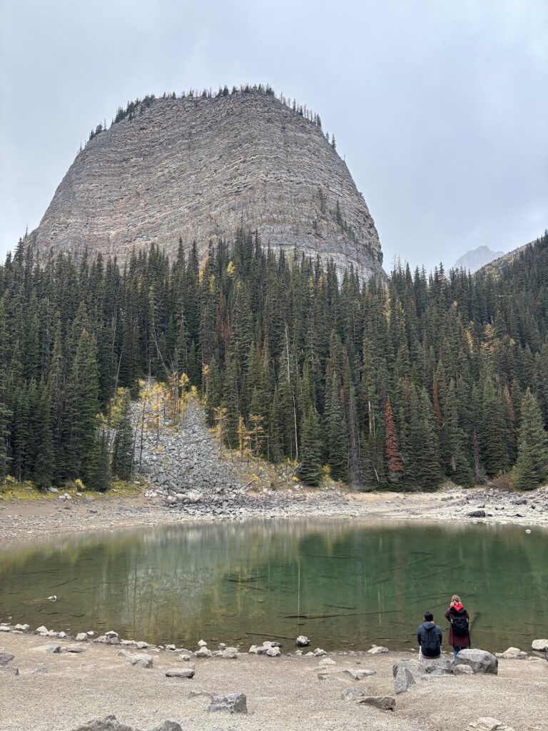 レイクルイーズを囲む山の一つ、二ブロック。レイクアグネスから奥に見える2つの山の右側の方の山です。レイクアグネスまでは簡単なハイキングルートですが、そこから先はトレイルも不明瞭な部分があったり、落石もあるルートなので行く場合は慎重に!