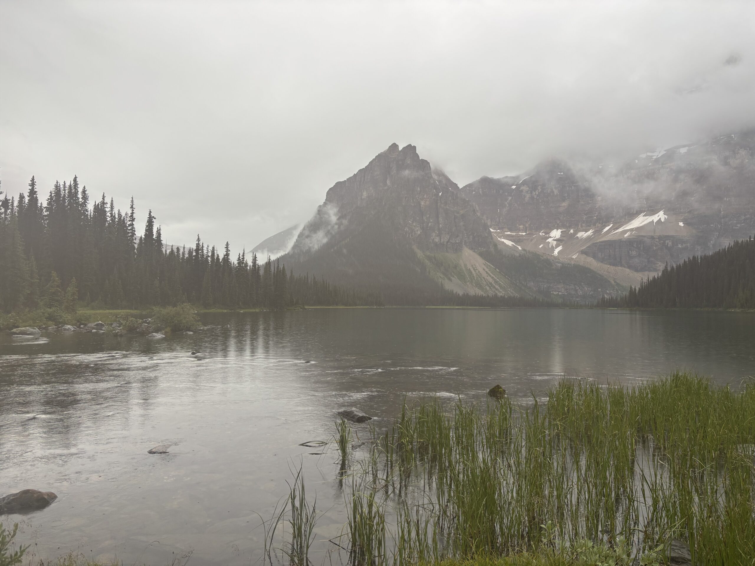 テントサイトからシャドウレイクまでは歩いてすぐです。ただやっぱり曇っていると湖も綺麗なんだかよく分かりません。幻想的と言えなくもないですが、一瞬で通り過ぎてしまいました。